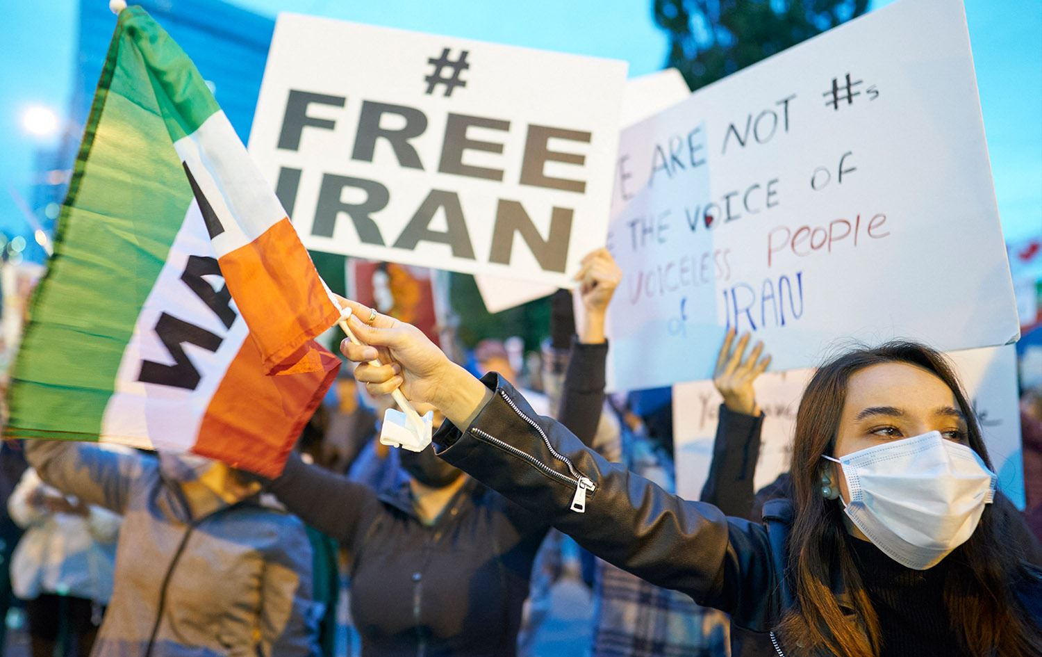People demonstrate against the Iranian regime during a protest at Mel Lastman Square in Toronto, Ontario, September 24, 2022. Photo: Geoff Robins/AFP