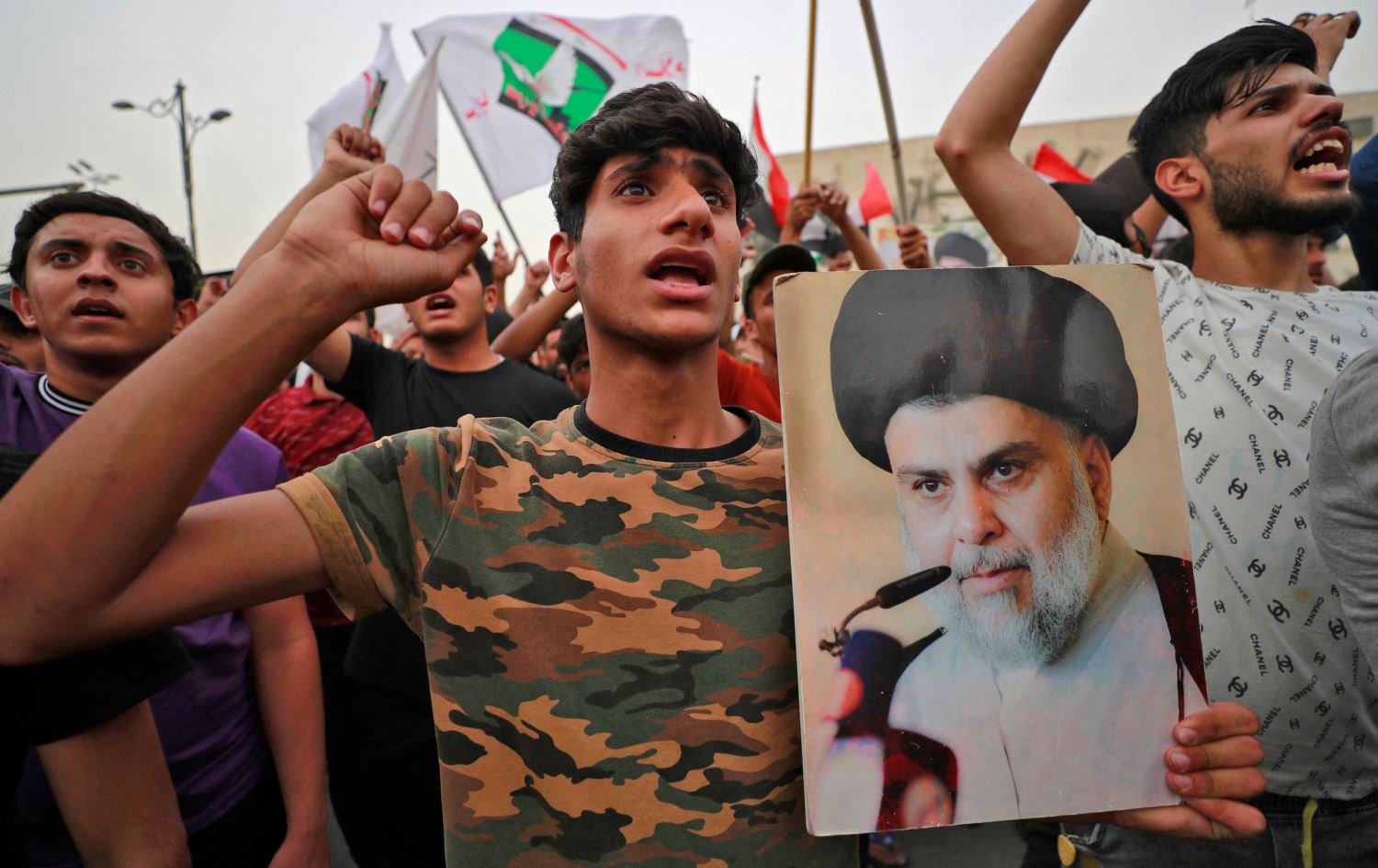 Supporters of Iraqi Shiite cleric Muqtada al-Sadr gather in Baghdad's Tahrir Square on May 26, 2022, to celebrate the passing of a bill that criminalizes normalization of ties with Israel. Photo: Ahmad al-Rubaye/AFP