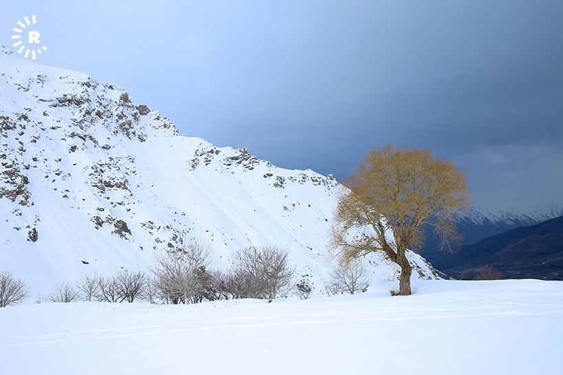 The mountain peaks in the Pirja area of Choman hold onto their snow year round, even in summer when the rest of Kurdistan Region bakes in scorching temperatures.