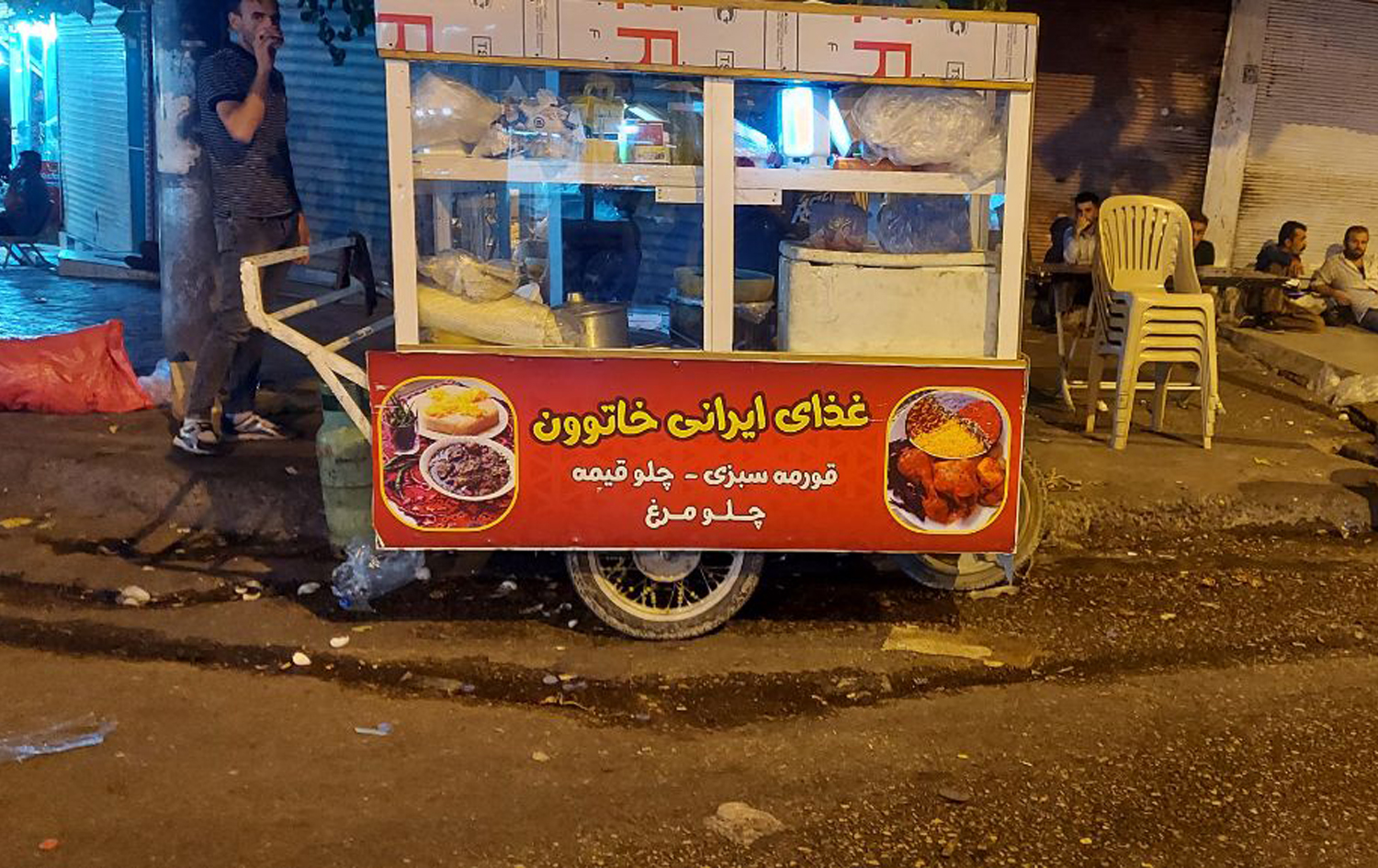 Many stop by the street food vendors near Sulaimani’s Grand Mosque for a cheap sandwich, some tea, and a smoke.