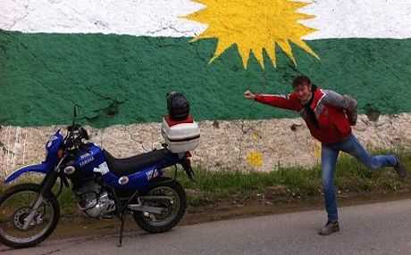 For his trip through Kurdistan, he had to rent the bike in Turkey, as no motor clubs are known in Kurdistan yet. This meant he had to bring official papers from the owner that he is allowed to take the bike across the border. The paperwork delayed him for three hours at the Turkish-Iraqi border.