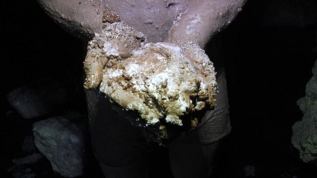 After wandering through down into caverns at least 100 meters, we could hear the roar of water, where we found a pond of sulfur water. The others took off their clothes and dove in to the deepest part of the underground reservoir.