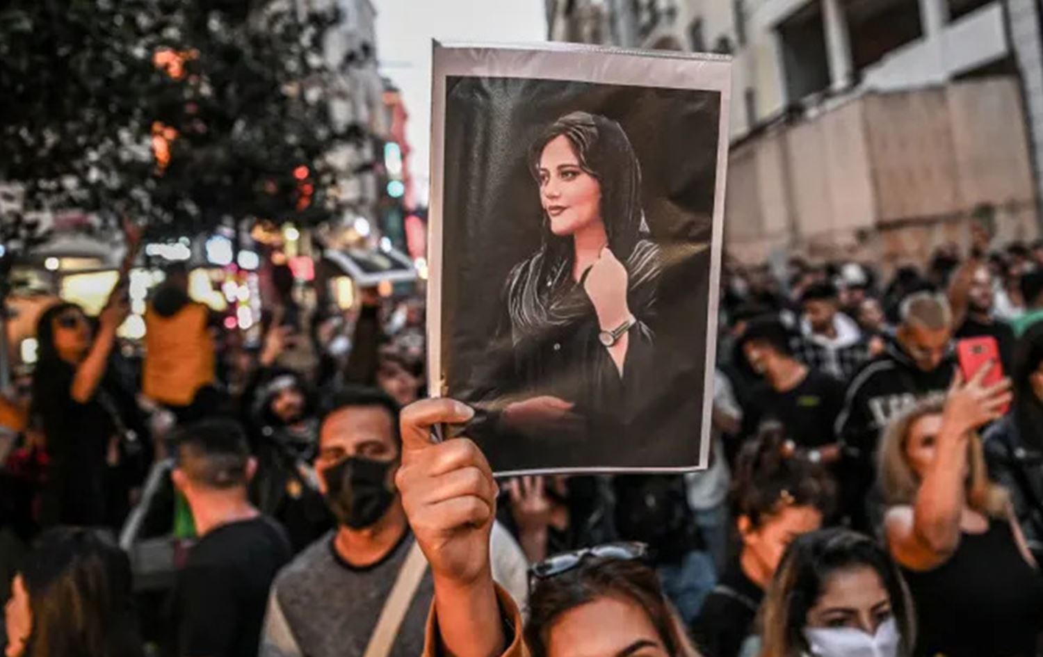 A protestor holds a portrait of Zhina Mahsa Amini during a demonstration in Istanbul on September 20, 2022. Photo: AFP