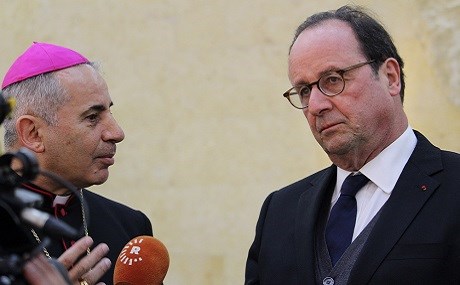 Hollande travelled from the Kurdistan Region's capital of Erbil to Mosul. There he visited a church, the city's minorities, and took questions from journalists.