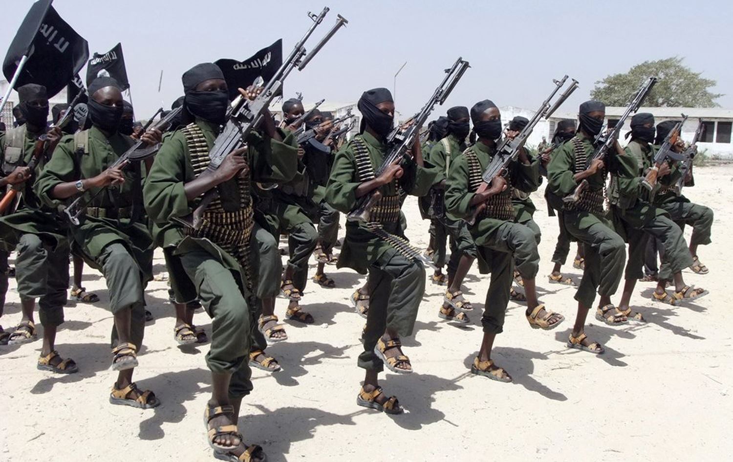 Al-Shabab fighters perform military exercises in Lafofe, south of Mogadishu, Somalia. File photo: Farah Abdi Warsameh / AP