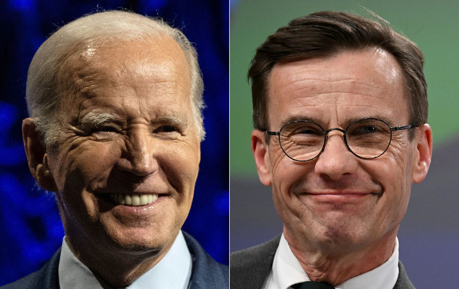 US President Joe Biden in Washington, DC, on June 14, 2023; and Sweden's Prime Minister Ulf Kristersson at EU headquarters in Brussels on March 20, 2023. Photo: AFP