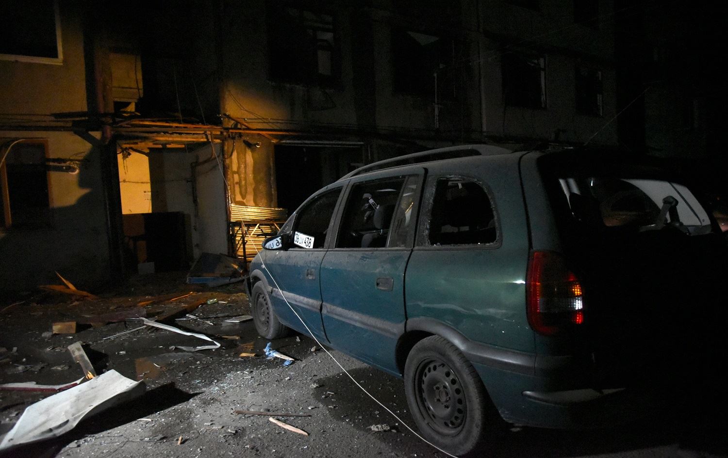 A car with broken windows is seen in front of an apartment building that was damaged by recent shelling in the breakaway Nagorno-Karabakh region's main city of Stepanakert on October 2, 2020, during the ongoing fighting between Armenia and Azerbaijan over the disputed region. Photo: Davit Ghahramanyan / AFP