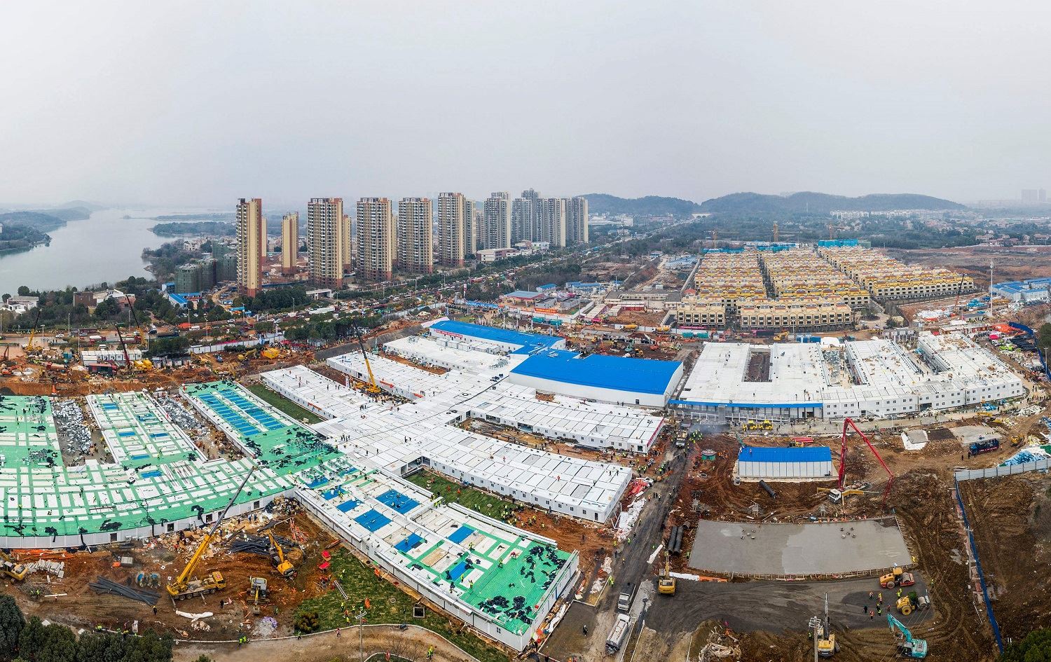 An aerial photo taken on February 2, 2020 shows the Huoshenshan field hospital in Wuhan, China, constructed to treat patients at the epicentre of a deadly virus epidemic that has severely strained medical facilities. Photo: AFP