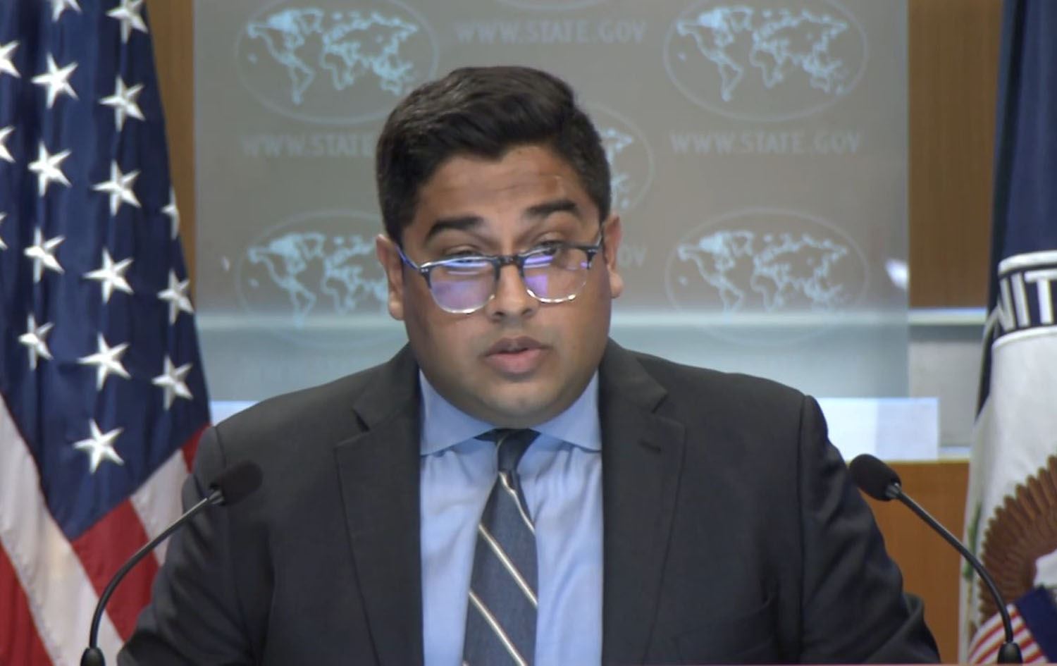 US State Department deputy spokesperson Vedant Patel speaking during a press briefing on July 2, 2024. Photo: Screengrab/State Department