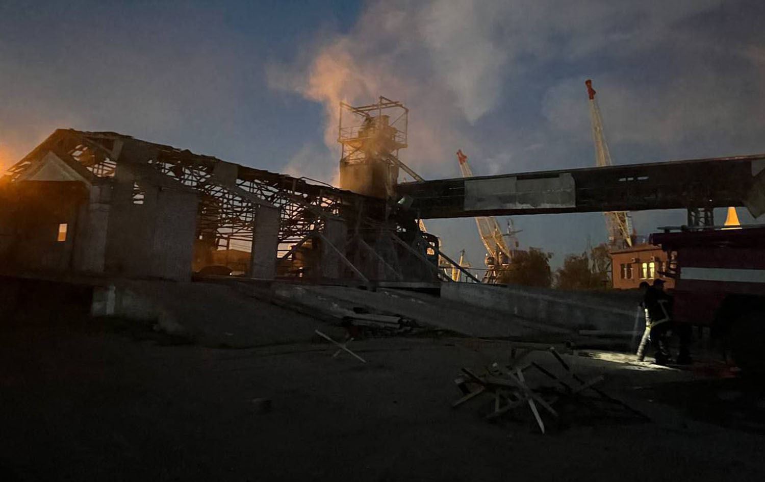 This handout photograph released by Ukrainian Emergency Service on August 2, 2023 shows a view of a damaged building at a Ukrainian port on the Danube. Photo: Handout/Ukrainian Emergency Service/AFP