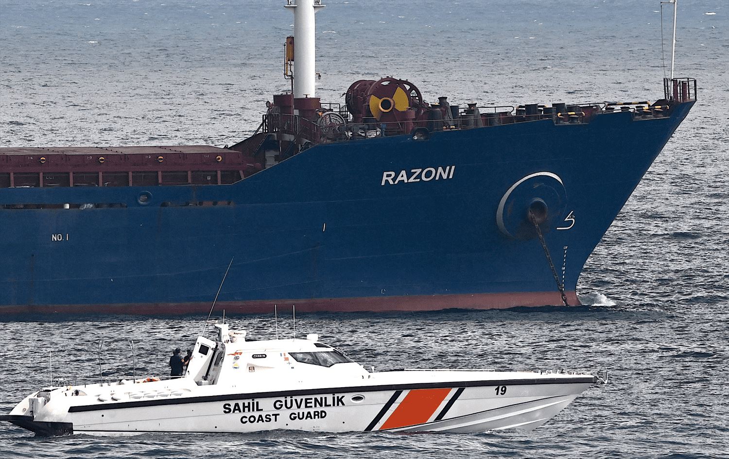 A cargo ship carrying 26,000 tonnes of corn from Ukraine, off the coast of north-west Istanbul, Turkey on August 3, 2022. Photo: Ozan Kose/AFP