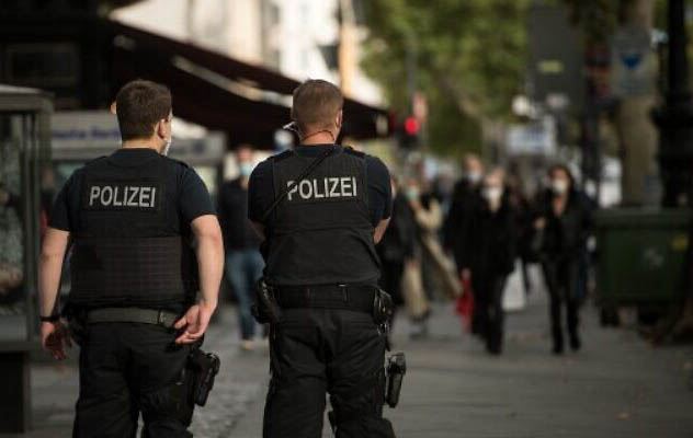 Police officers of Germany's Federal Police patrol a popular shopping street in Berlin on October 24, 2020. Photo: Stefanie Loos/AFP