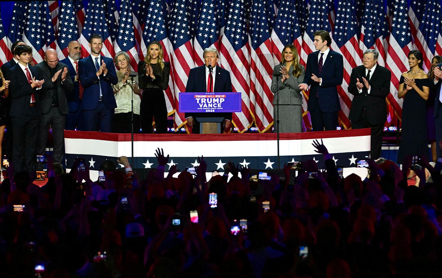 Former US President and Republican presidential candidate Donald Trump speaks during an election night event at the West Palm Beach Convention Center in West Palm Beach, Florida, on November 6, 2024. Photo: Jim Watson/AFP