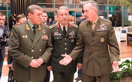 Turkish Chief of General Staff Gen. Hulusi Akar, US Chairman of Joint Staff of Chiefs Gen. Joseph Dunford, and Russian Chief of General Staff Gen. Valery Gerasimov all met, Hurriyet Daily News reported, citing a statement released by the Turkish military.