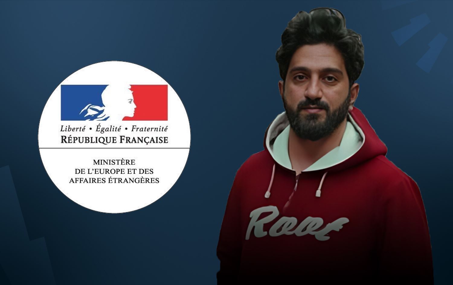 Logo of French foreign ministry, Reza Rasaei who was executed in Iran on August 6, 2024. Photo: Hengaw Organization for Human Rights, Graphic: Rudaw