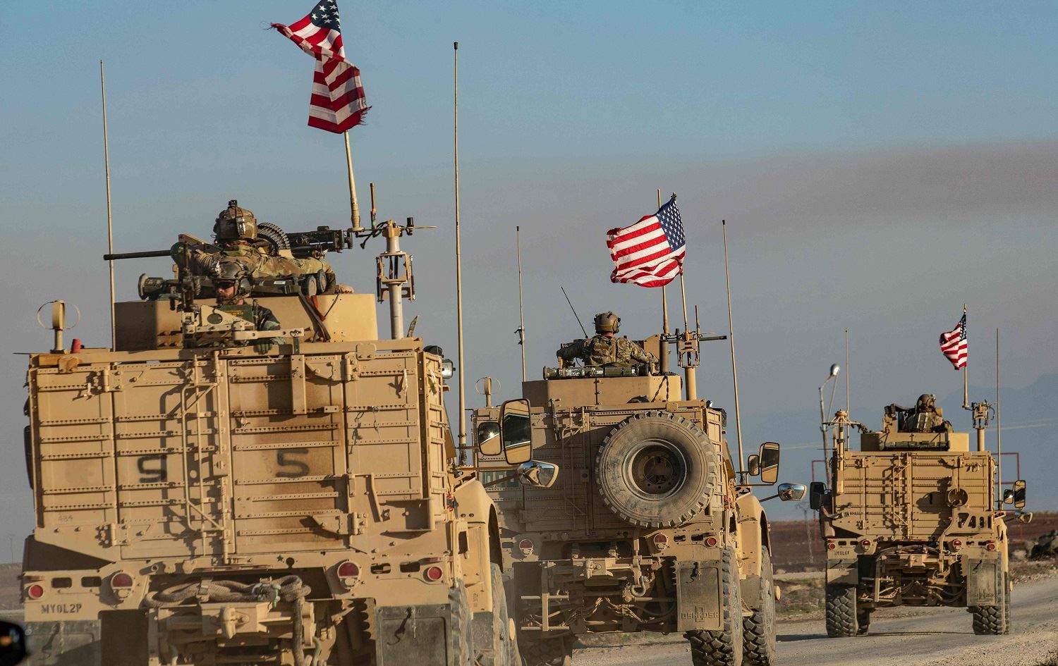 A convoy of US armoured vehicles patrols the village of Ein Diwar in Syria's northeastern Hasakeh province on November 4, 2019. / AFP / Delil Souleiman