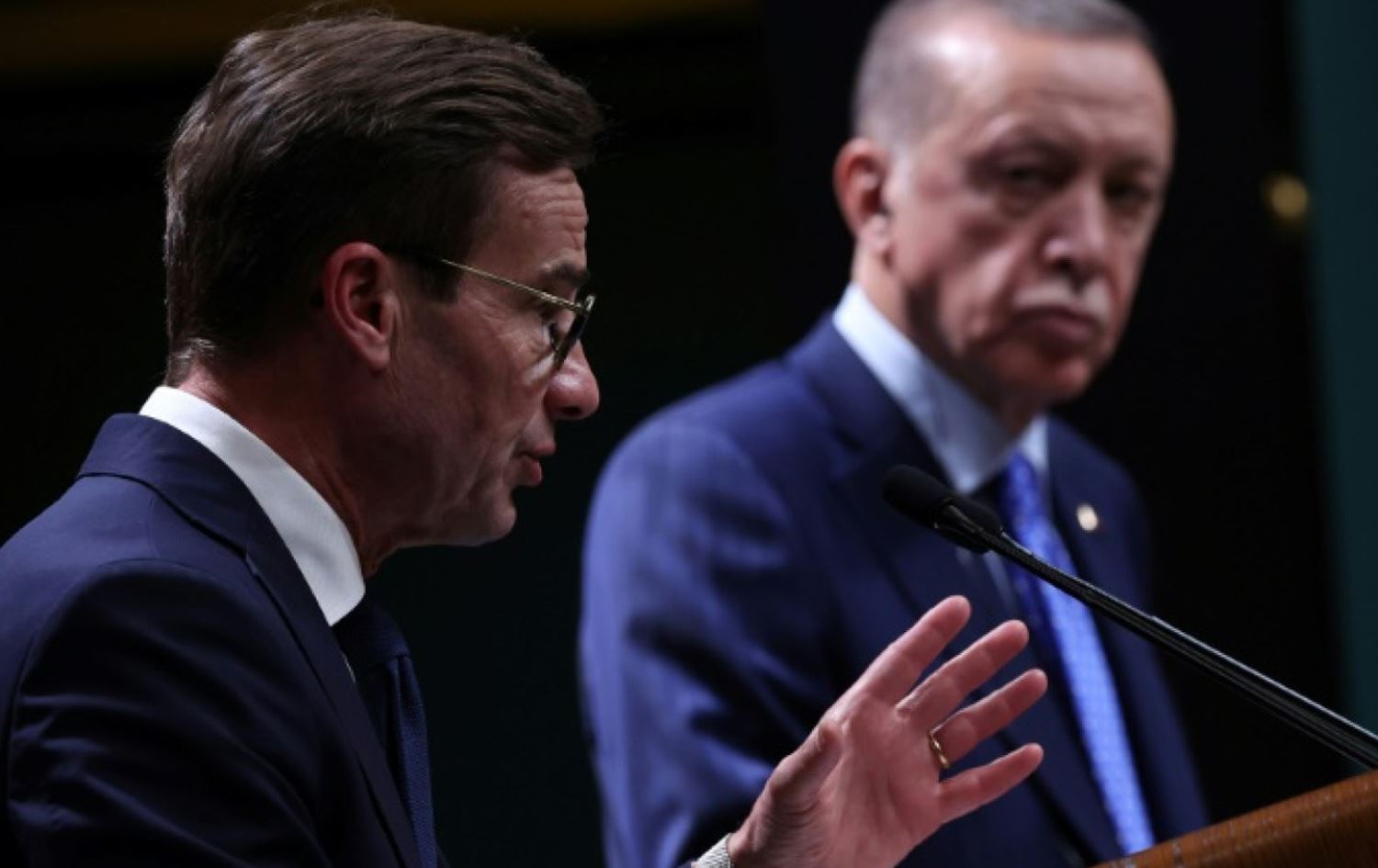 Turkish President Recep Tayyip Erdogan (right) and Swedish PM Ulf Kristersson (left). Photo: Adem Altan/AFP
