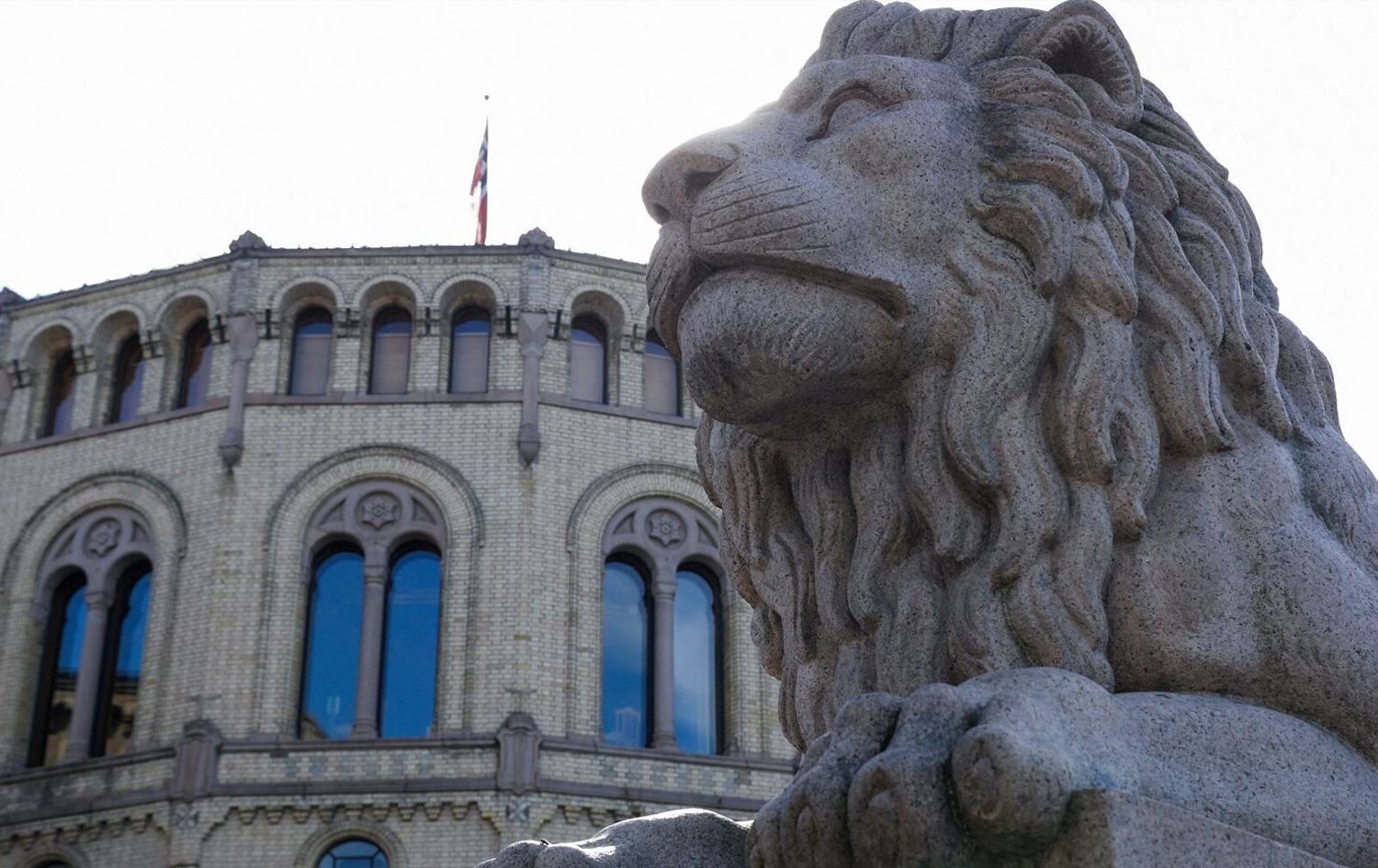 A photo taken on September 1, 2021 shows a lion statue in front of the Norwegian Parliament in Oslo, ahead of the parliamentary elections. Photo: AFP