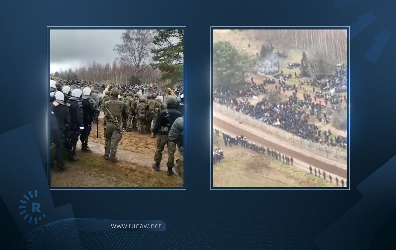 Screengrabs from videos shared by the Polish government show migrants gathered on the Belarus-Poland border on November 8, 2021. Photos: screengrabs/Polish defense and interior ministries