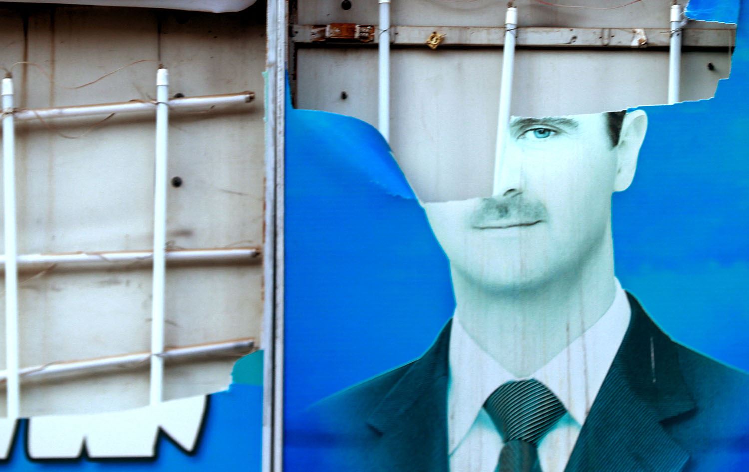 A damaged portrait of Syrian President Bashar al-Assad is hangs in the city of Qamishli, as Syrian Kurds celebrate the fall of capital Damascus to anti-government fighters on December 8, 2024. Photo: Delil SOULEIMAN / AFP
