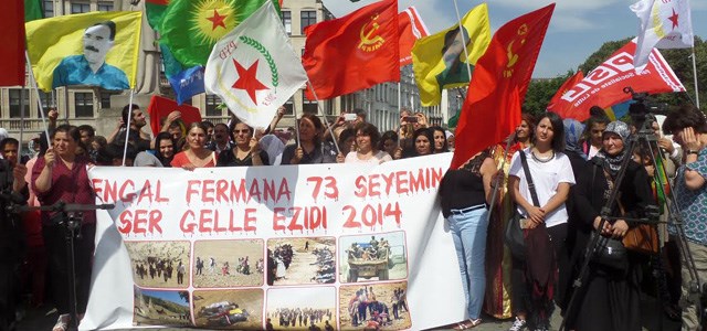 They held aloft a big banner with photographs of the Shingal massacres of Yazidi Kurds, with a reminder that massacres against the minority have been going on for over 73 years.