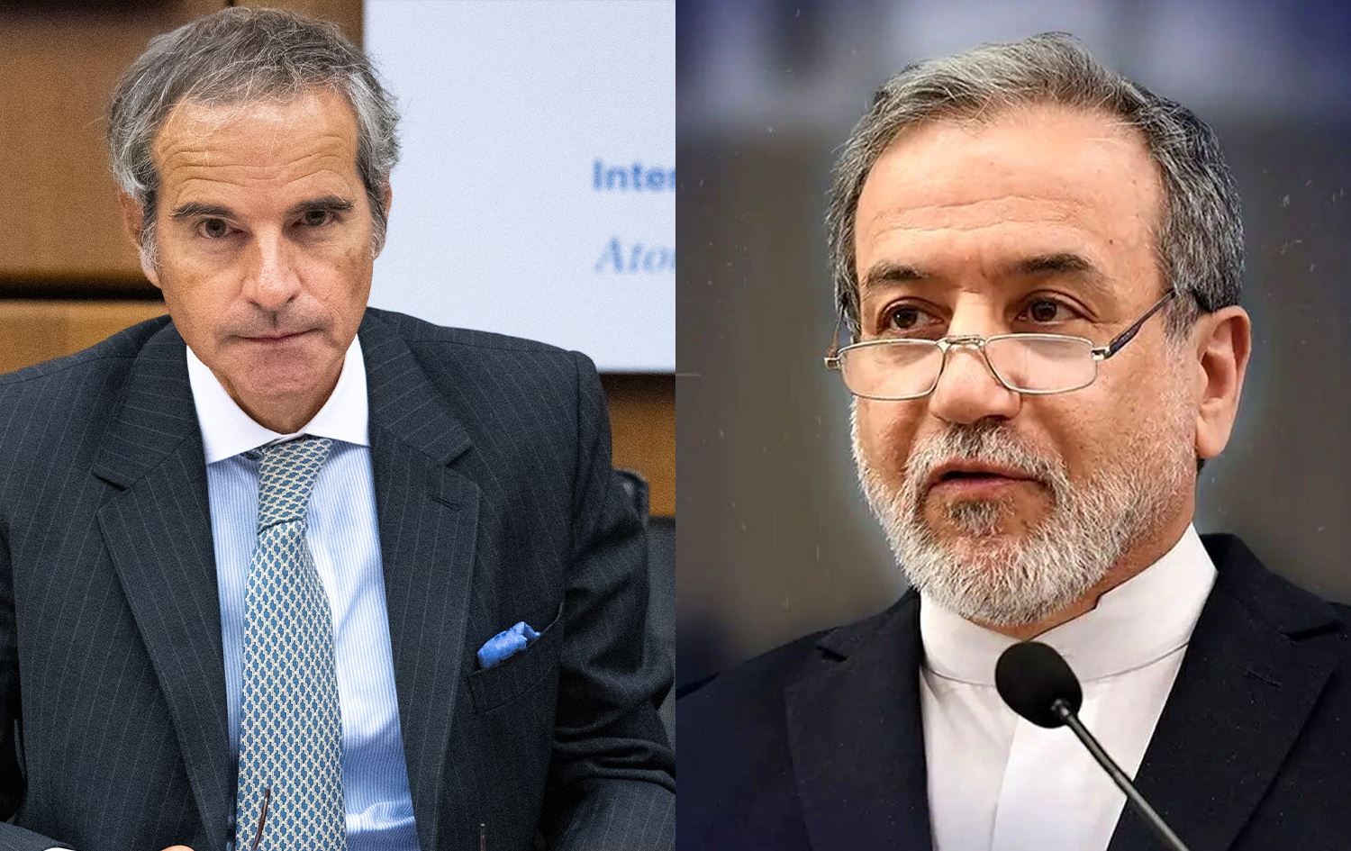 Foreign Minister Abbas Araghchi (right) and the International Atomic Energy Agency (IAEA) chief Rafael Grossi (left). Photos: IRNA and AFP. Graphic: Rudaw