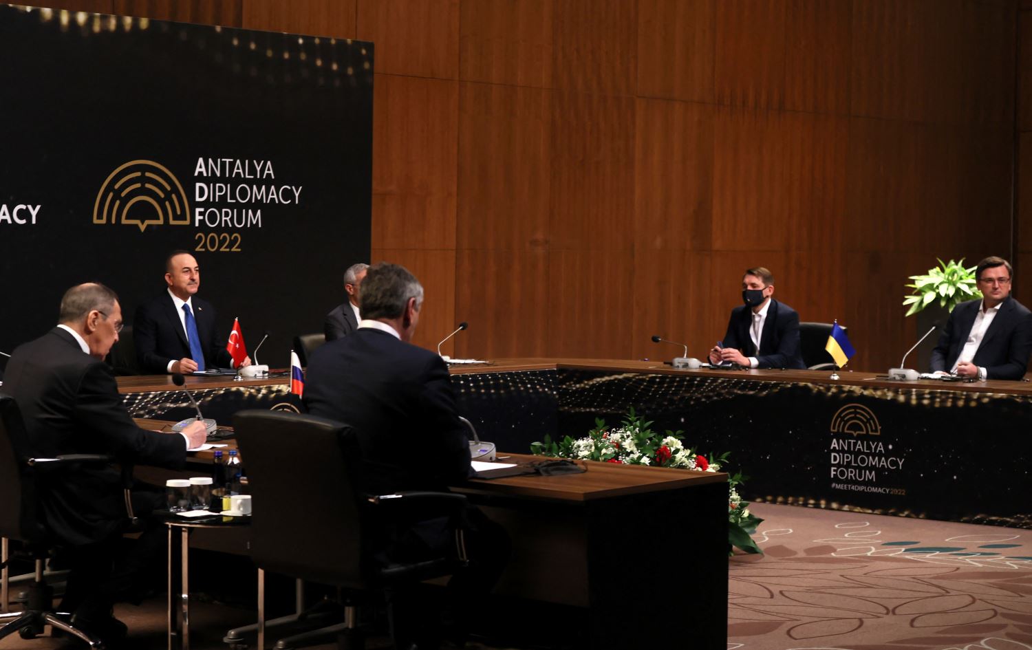 Tripartite meeting between the Turkish, Russian, and Ukrainian delegations in Antalya on March 10, 2022. Photo: Handout