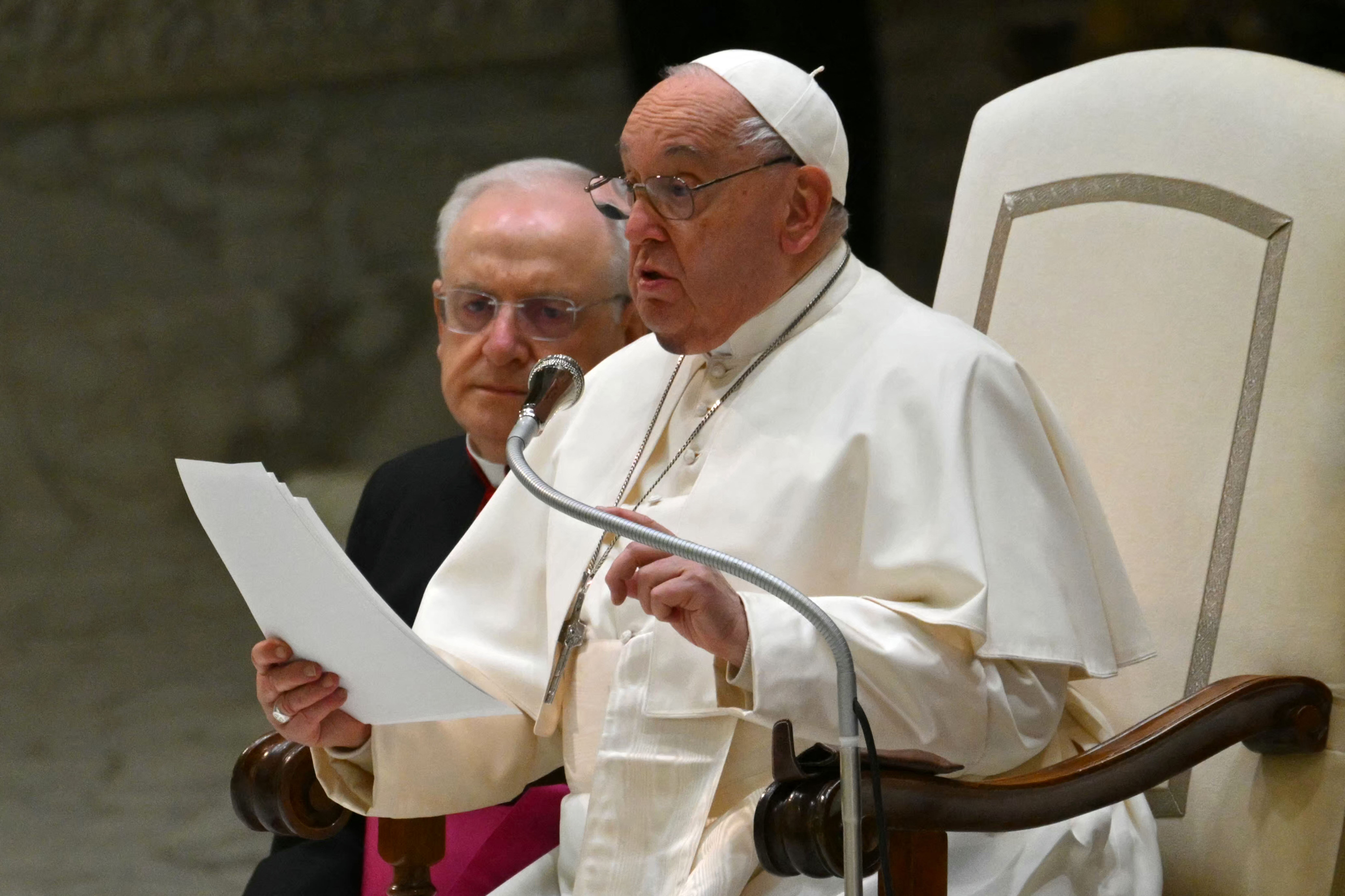Pope Francis speaks during the weekly general audience at Paul-VI hall in The Vatican, on December 11, 2024. Photo: AFP
