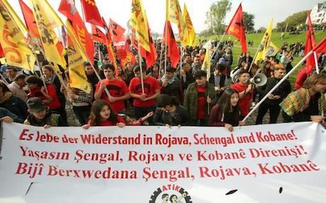 LONDON – The leader of Syrian Kurds told thousands of protesters in Germany that Kurdish fighters are resisting the Islamic State’s (ISIS) assaults on Kobane, but said there would be no shame in losing the battle.