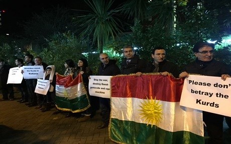 LONDON—'Stop the war, destroy the Daesh genocide and rape machine' was the ironic slogan held up by Kurds as supporters of the Stop the War Coalition - stoppers for short - made their way into a London restaurant for a fundraising dinner Friday night. Other placards said airstrikes saved Kobane and liberated Sinjar. They also urged the stoppers not to betray the Kurds and said 'Thanks to British friends for the airstrikes.'