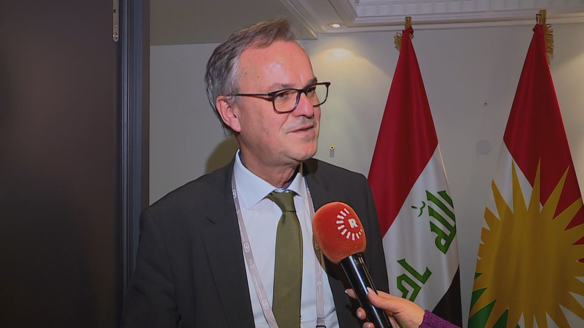Hans-Georg Engelke, state secretary at Germany’s Ministry of the Interior and Community speaking to Rudaw in Munich on February 14, 2025. Photo: screengrab/Rudaw