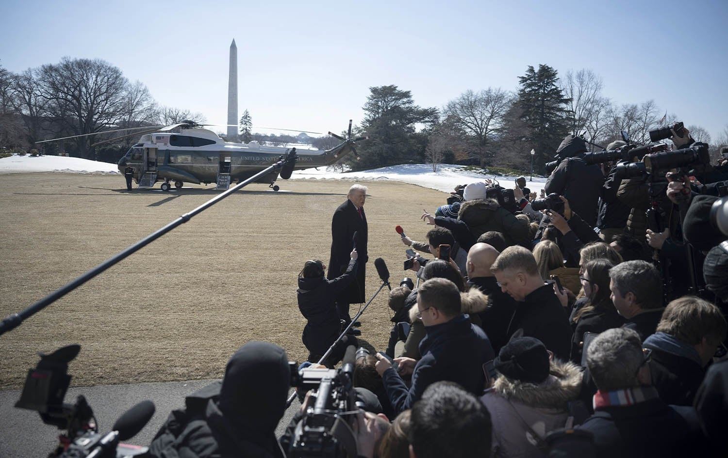 US President Donald Trump speaking to reporters before leaving the White House on February 13, 2026. Photo: Celal Gunes / Anadolu Agency