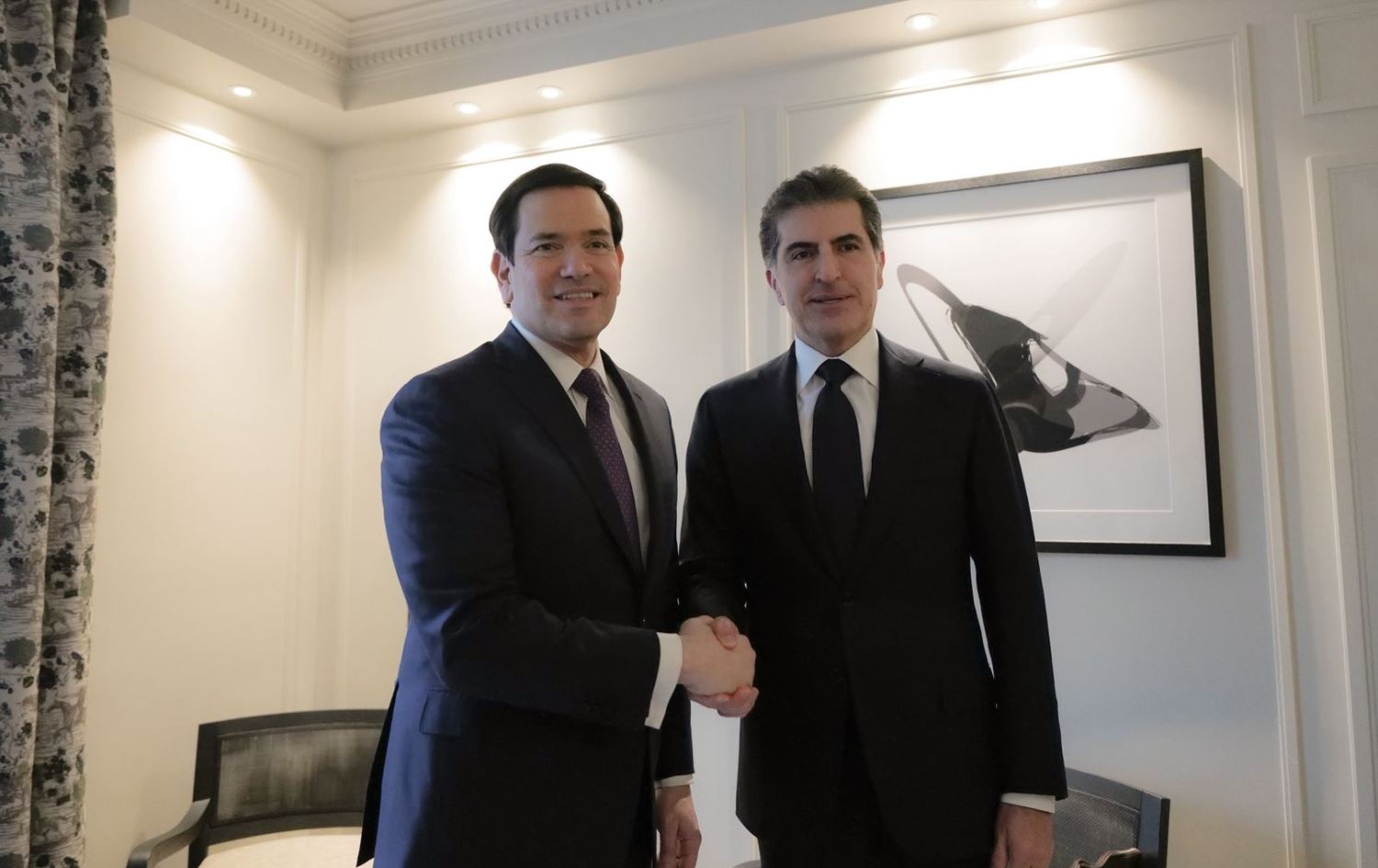 ERBIL, Kurdistan Region - Kurdistan Region President Nechirvan Barzani met with US Secretary of State Marco Rubio on Saturday at the Munich security conference, where the two leaders discussed “prospects for mutual cooperation” and stabilization in Syria.