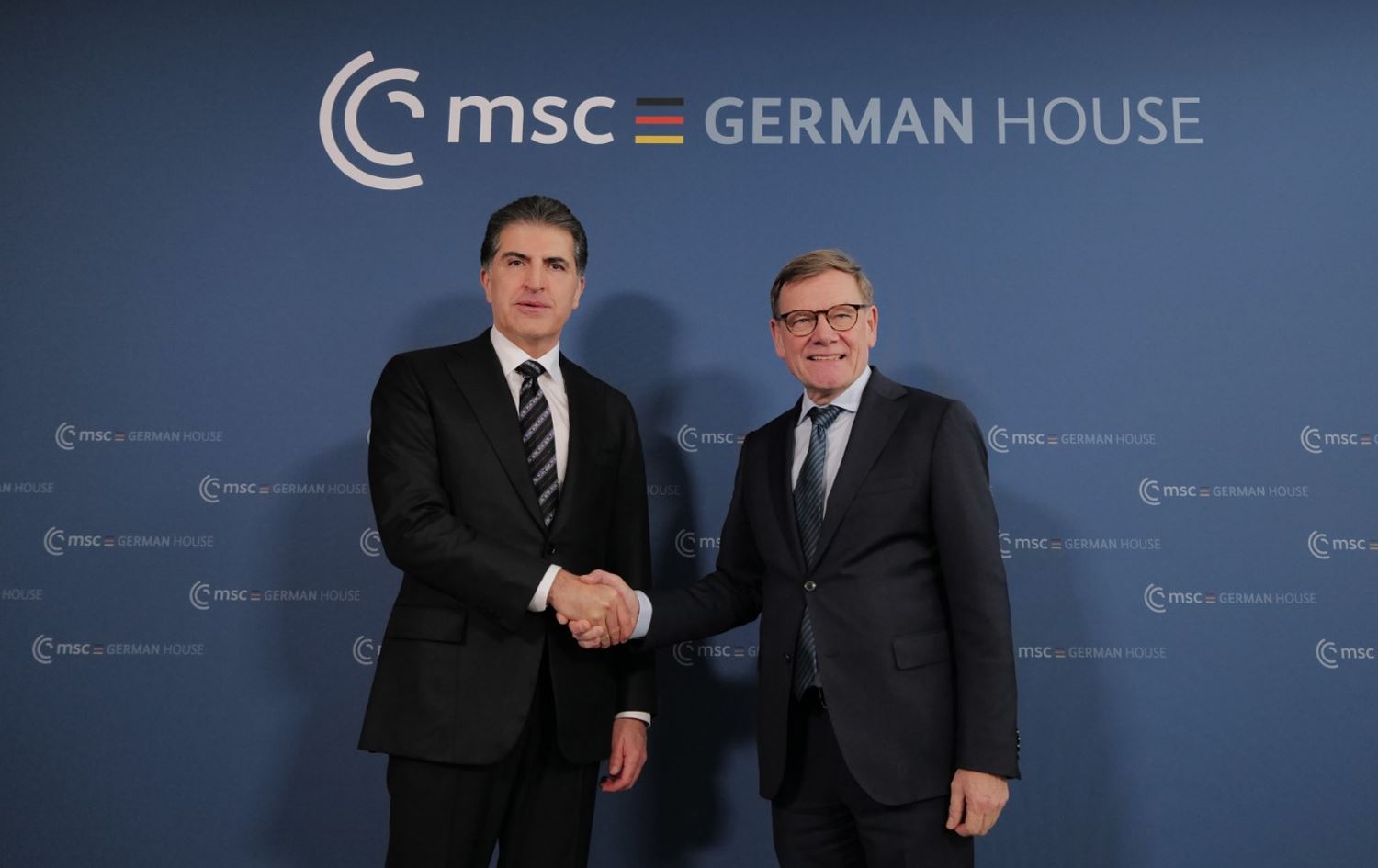 Kurdistan Region President Nechirvan Barzani (left) and Johann Wadephul, Federal Minister for Foreign Affairs of Germany, shake hands on the sidelines of Munich Security Conference on February 15, 2026. Photo: Kurdistan Region Presidency