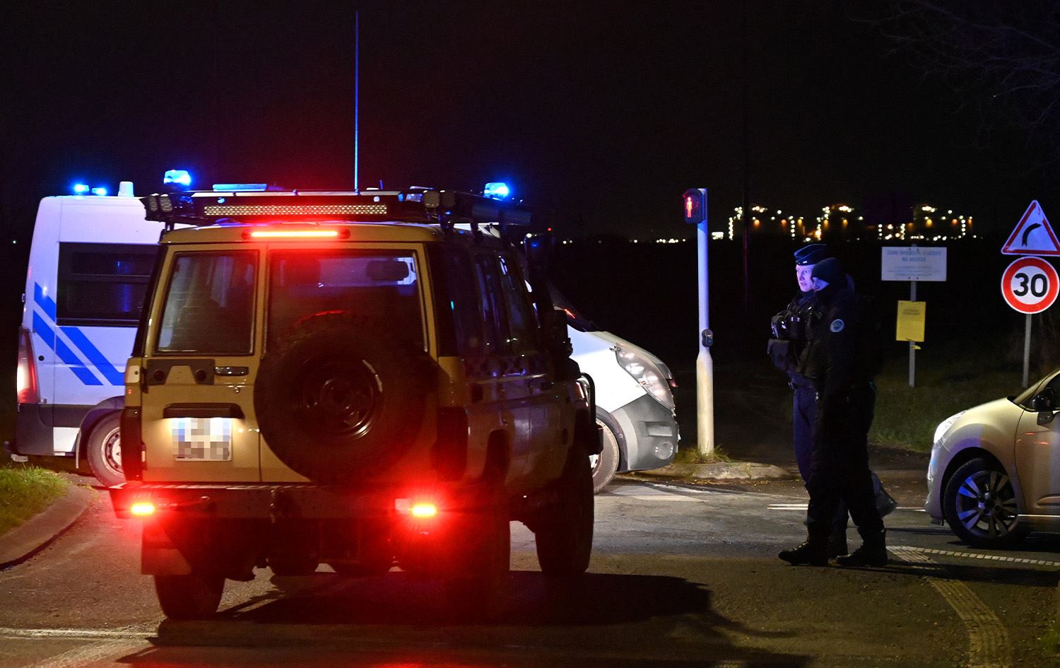 Police cordon off a migrant camp on a road between Mardyck and Loon Beach where two security guards and two migrants were shot dead, near Dunkirk, northern France, on December 14, 2024. Photo: Bernard Barron/AFP
