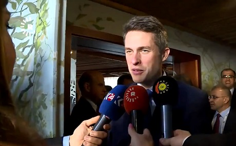 UK Defense Secretary Gavin Williamson speaks to reporters on the sidelines of the MSC, February 16, 2019. Photo: Rudaw videoAsked whether British troops will remain in Iraq long term, Williamson said: “I don’t I’m afraid have an opportunity to talk about operational matters, but we have had a long and sustained relationship over many years and I’m sure that will continue into the future.”