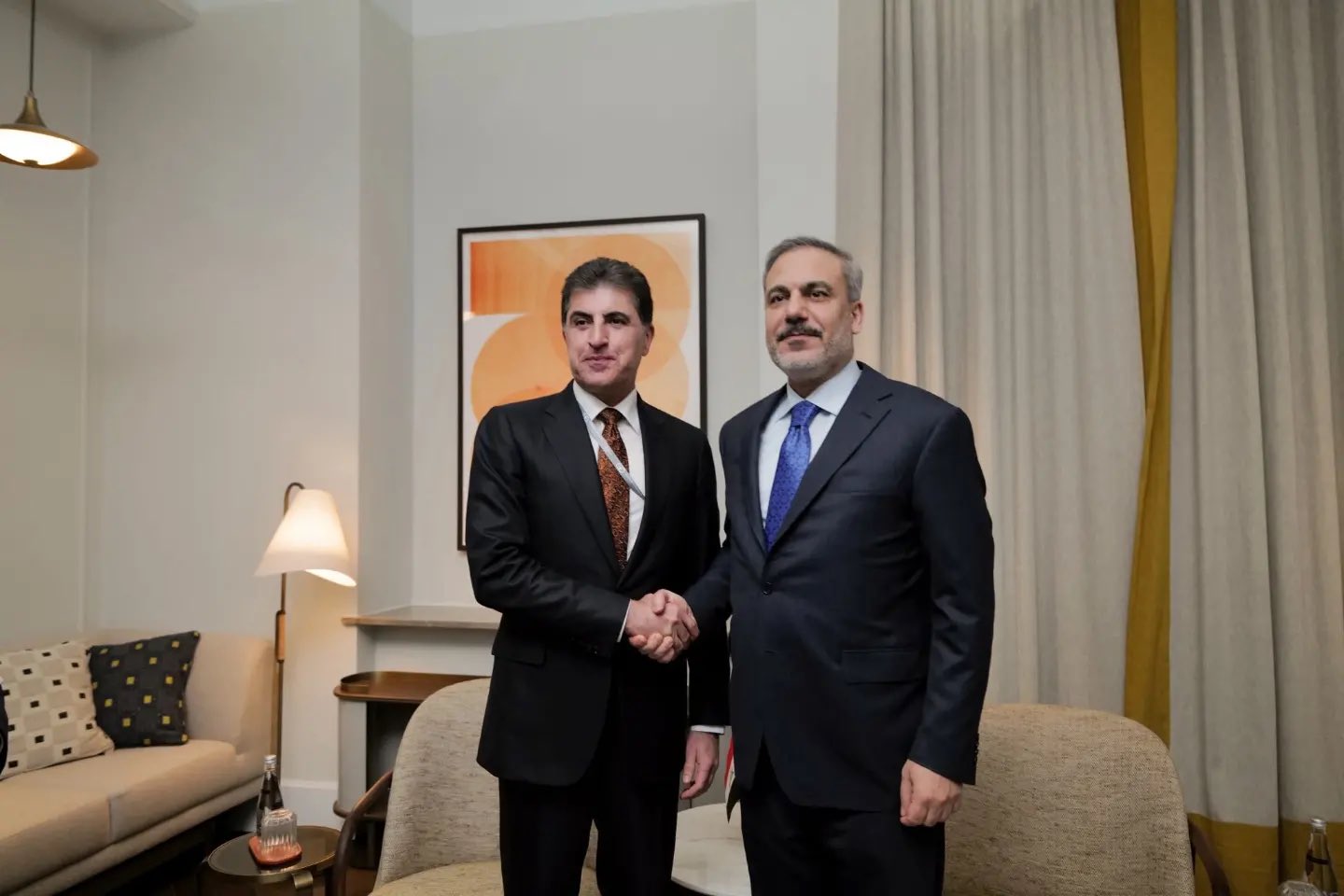 “I had a constructive meeting with Foreign Minister @HakanFidan of Türkiye today in Munich. We discussed further strengthening the Kurdistan Region and Iraq’s relations with Türkiye as well as addressing pressing security concerns facing the wider region,” President Barzani said in a post on X.