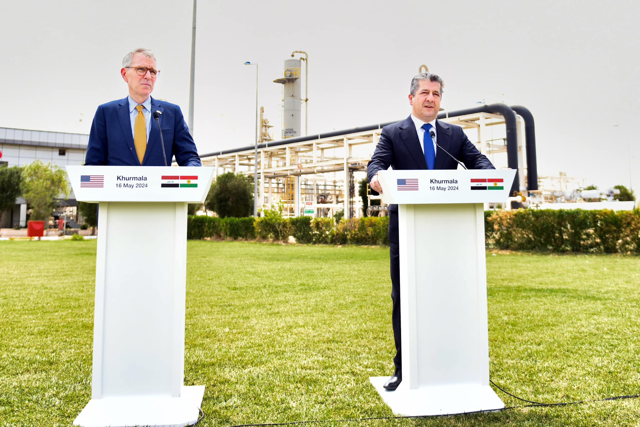 “I must say today’s visit has left a powerful impression on me in terms of the energy abundance of this region… I said in our meeting that this is like a little Oklahoma. As I look at the landscape here, it reminds me so much of some of our oil producing regions in the United States,” Geoffrey Pyatt said during a joint press conference with Kurdistan Region Prime Minister Masrour Barzani at Khurmal power and refinery facilities in Erbil province.
