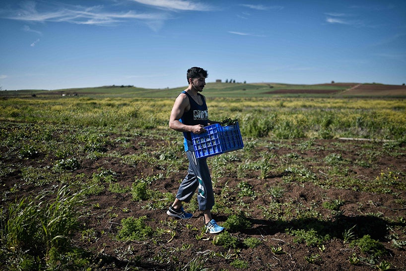 Far from minding the arduous labour, the knowledgeable herb picker is happy to be outdoors, surrounded by the springtime bloom, after months spent cooped up in refugee camps and reception centres.