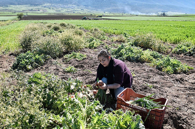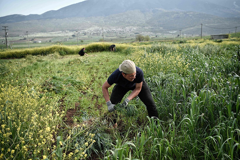 KAPARELLI, Greece — On a field deep in Greek farm country north of Athens, Suzan from Syria is smiling over an onion patch.