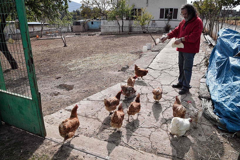 Apart from being consumed locally, the produce is also bottled and sold at the Sunday street market of Exarchia, the anarchist-friendly Athens district that welcomes refugees.