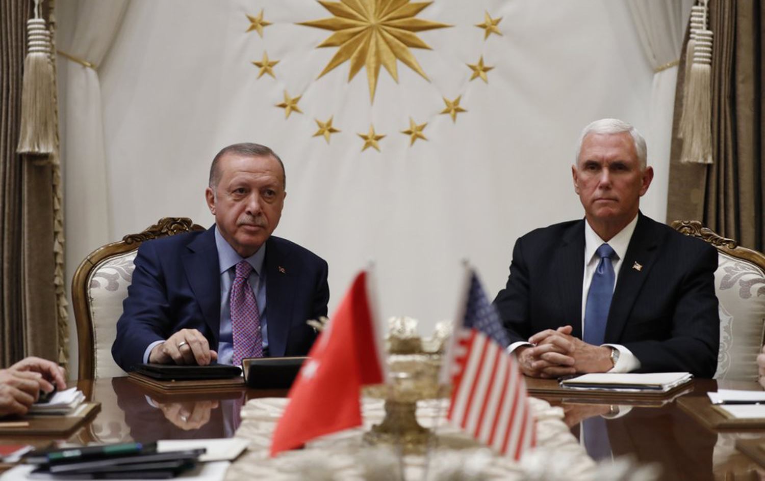 Vice President Mike Pence (R) meets with Turkish President Recep Tayyip Erdogan at the Presidential Palace in Ankara, Turkey for talks on the Kurds and Syria, October 17, 2019. Photo: Jacquelyn Martin / AP