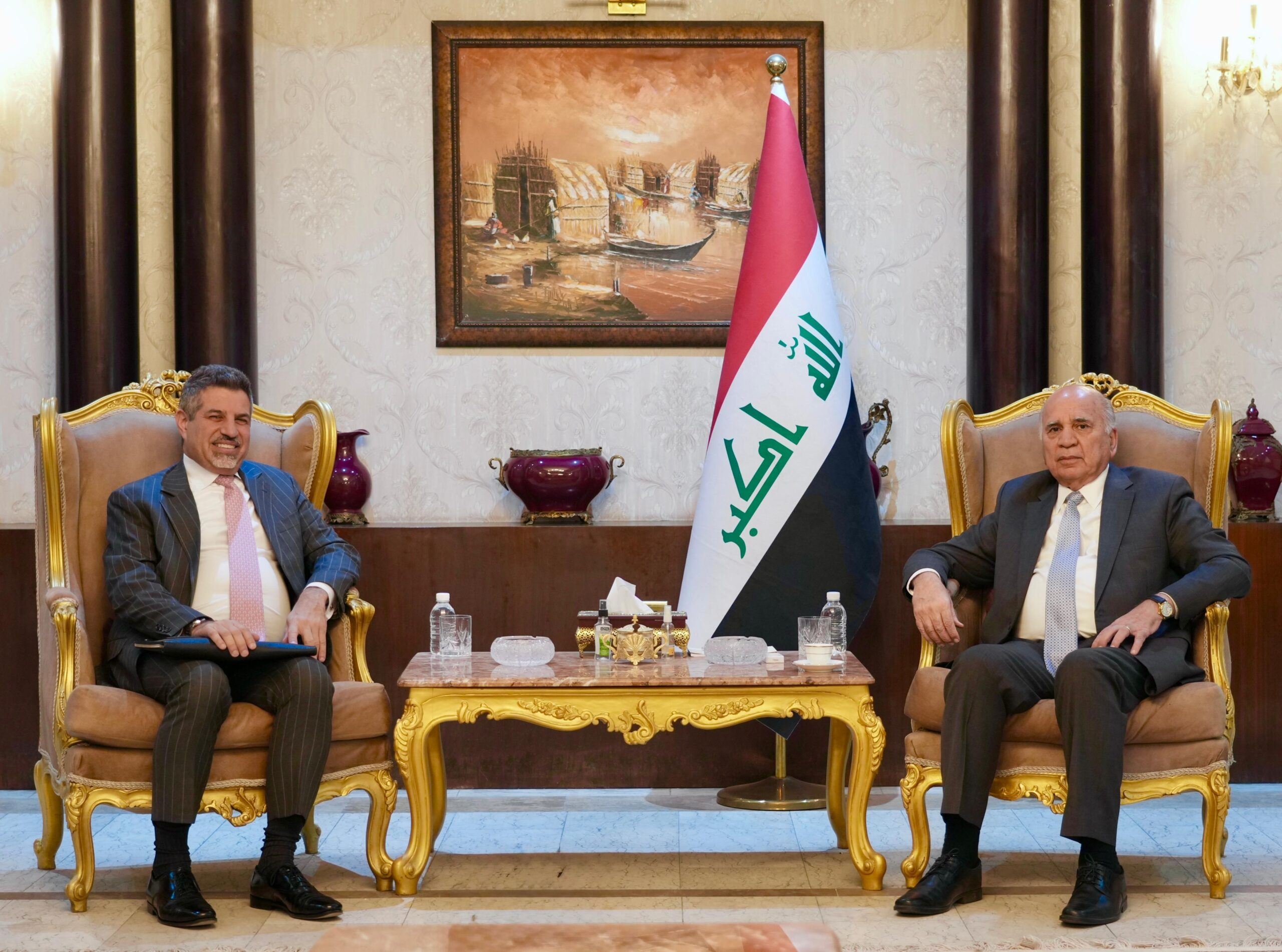 Iraqi Foreign Minister Fuad Hussein (right) received Steve Fagin, charge d'affaires of the US embassy, in Baghdad on June 17, 2025. Photo: Iraqi foriegn ministry
