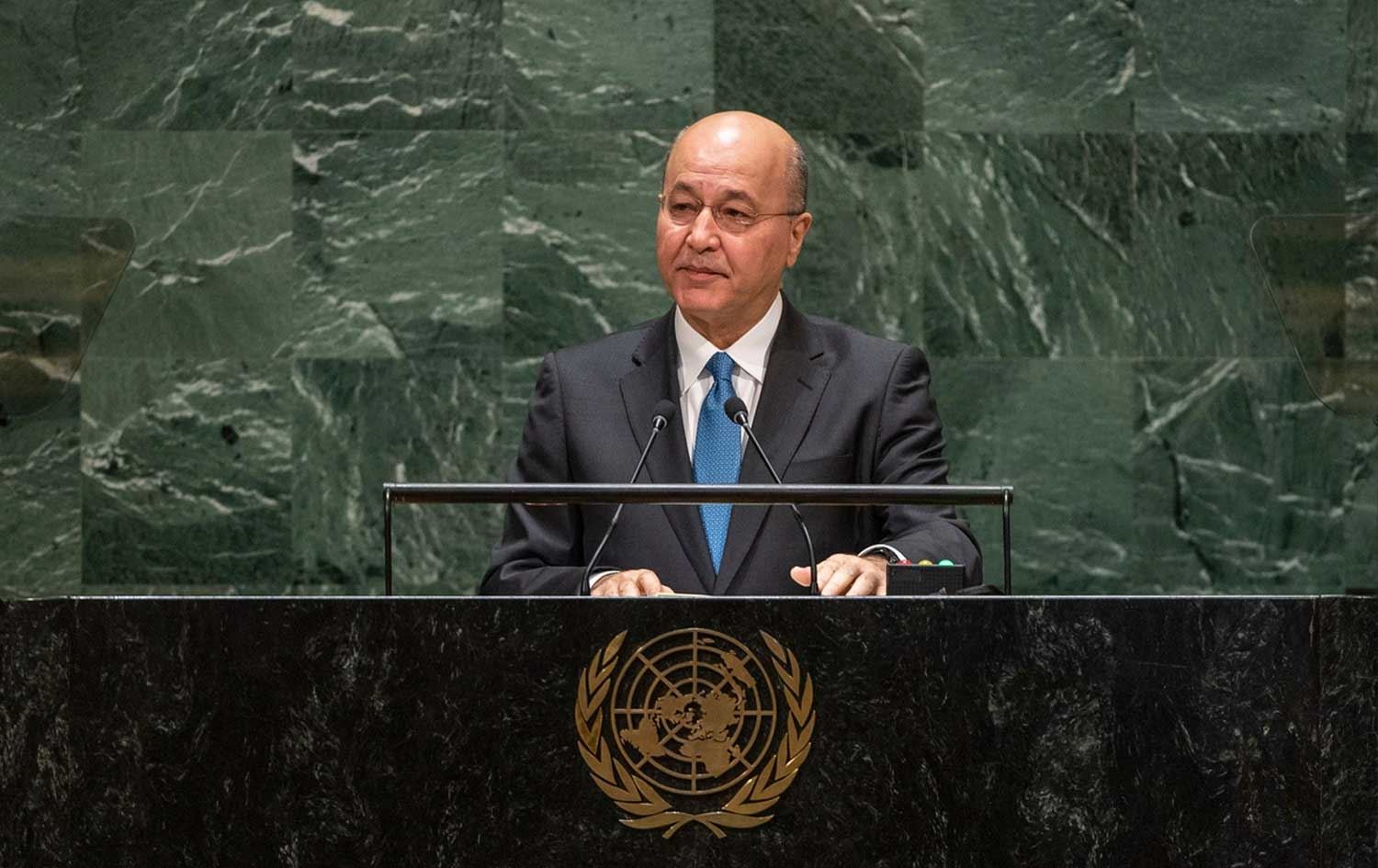 Former Iraqi president Barham Salih addressing the UN General Assembly in New York in 2019. File photo: UN