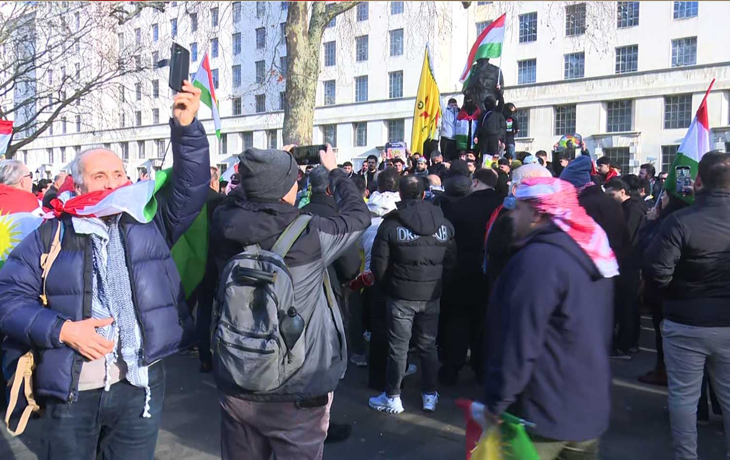 ERBIL, Kurdistan Region - Hundreds of Kurdish protesters gathered outside British Prime Minister Keir Starmer’s office on Tuesday, calling on the UK to take action against the Syrian military’s offensive on Kurdish-held areas in northeast Syria (Rojava).