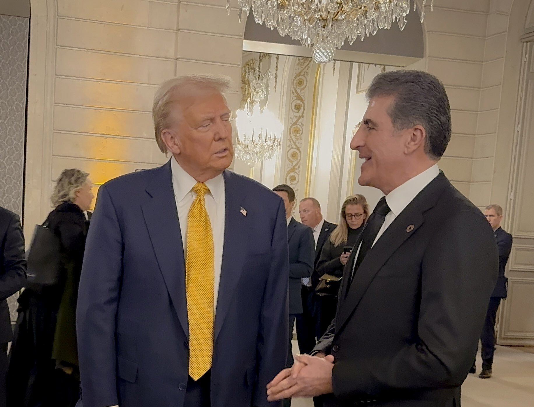 Kurdistan Region President Nechirvan Barzani (right) and Donald Trump meeting in Paris on December 7, 2024, Photo: Kurdistan Region Presidency