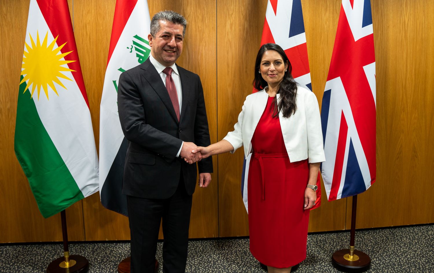 Kurdistan Region Prime Minister Masrour Barzani and UK Home Secretary Priti Patel in London on April 20, 2022. Photo: Priti Patel/Twitter