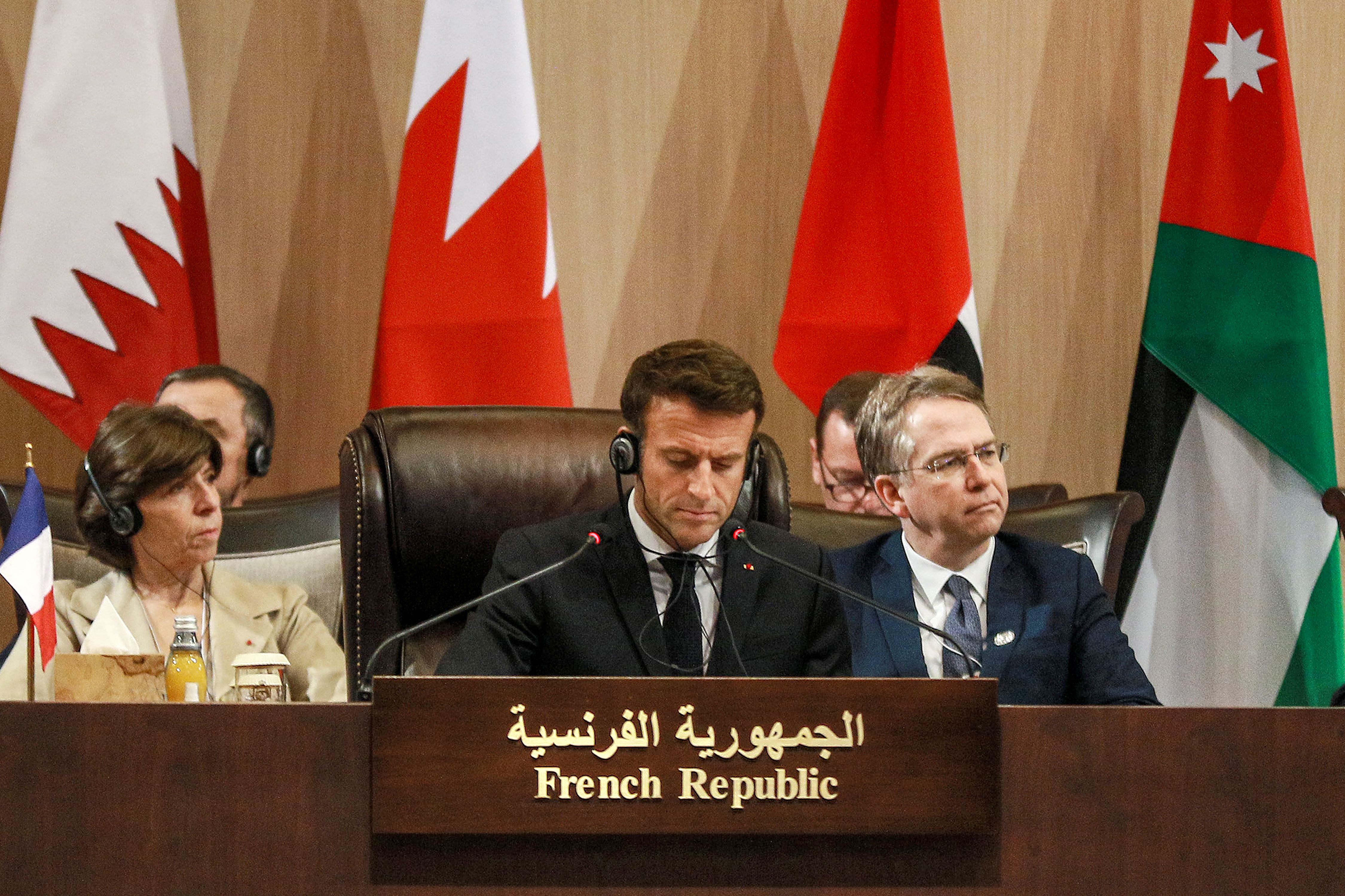 French President Emmanuel Macron (C) attends the "Baghdad Conference for Cooperation and Partnership" in Sweimeh, Jordan on December 20, 2022. Photo: AFP