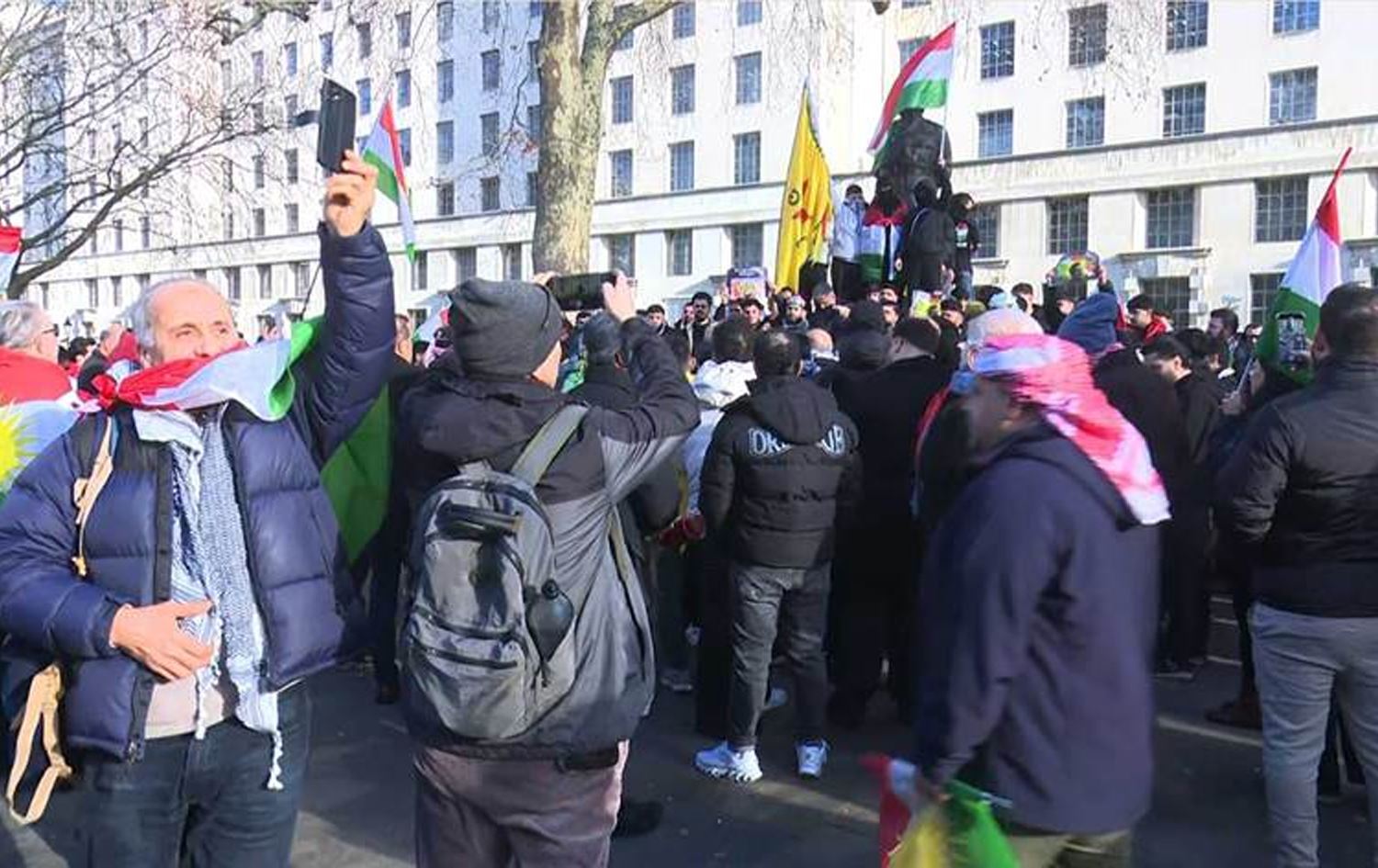 Hundreds of Kurdish protesters gathered outside British Prime Minister Keir Starmer’s office on Tuesday, calling on the UK to take action against the Syrian military’s offensive on Kurdish-held areas.