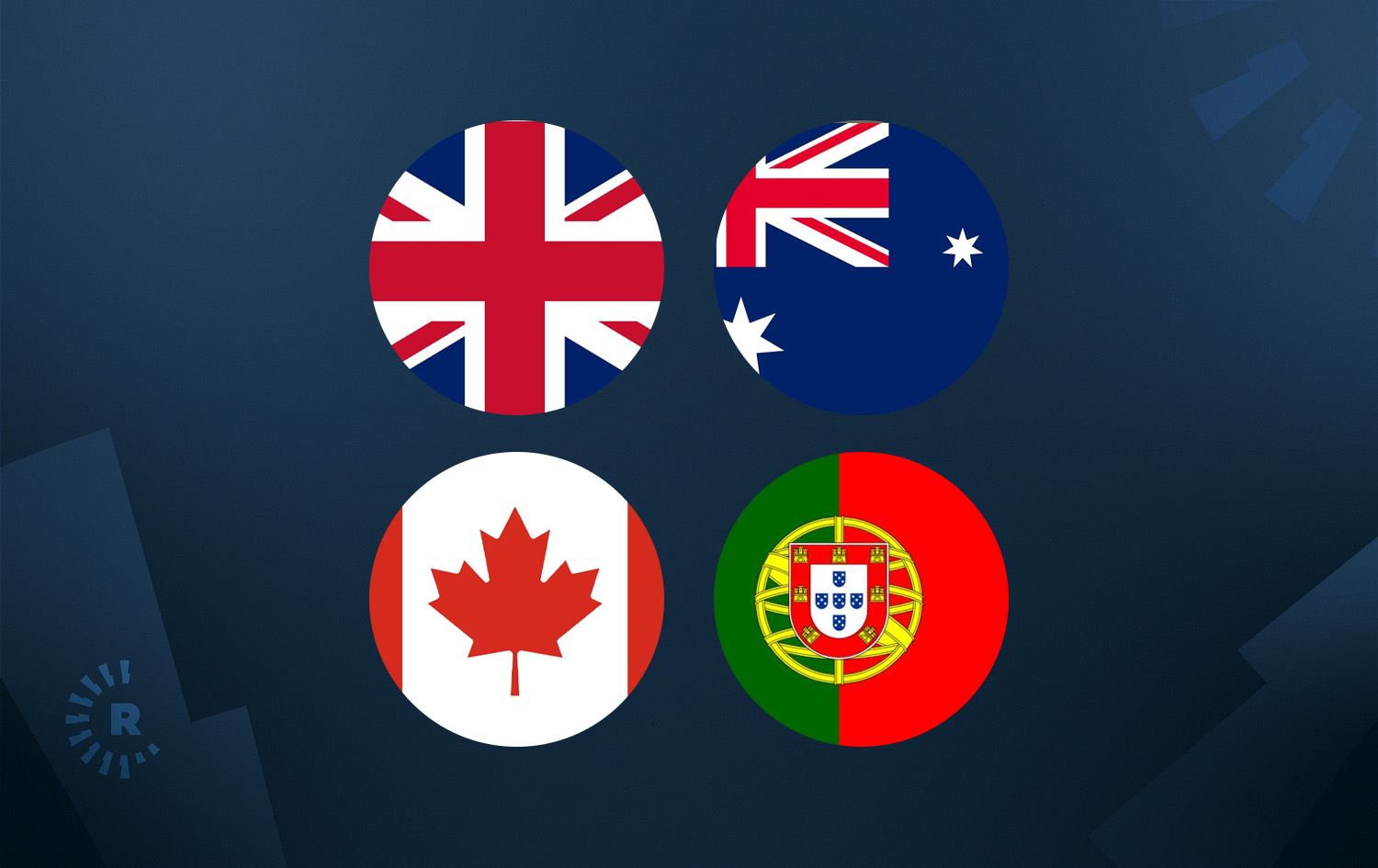 Flag of the United Kingdom (upper left), Australia (upper right), Canada (lower left) and Portugal (lower right). Graphic: Rudaw